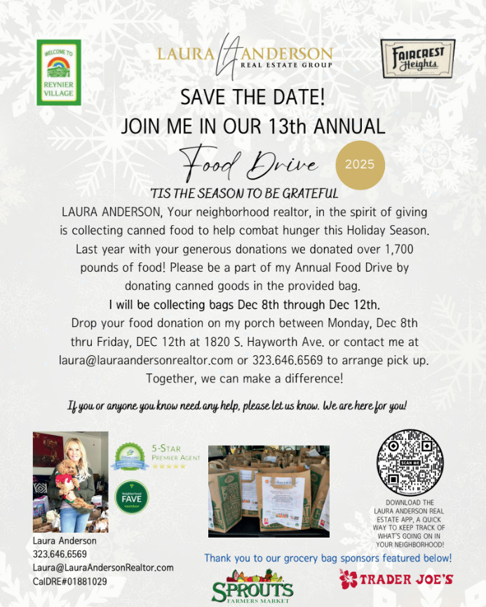 So grateful to all our amazing neighbors in Faircrest Heights and Reynier Village for your generous donations this year! It warms my heart to say we collected over 250 food bags and toys for the Fame Food Drive and Sofa Food Pantry. I was deeply touched by your generosity. If you know someone who needs a helping hand, please reach out to me, we are always here help. This is what the holidays are all about the spirit of giving! With Gratitude,